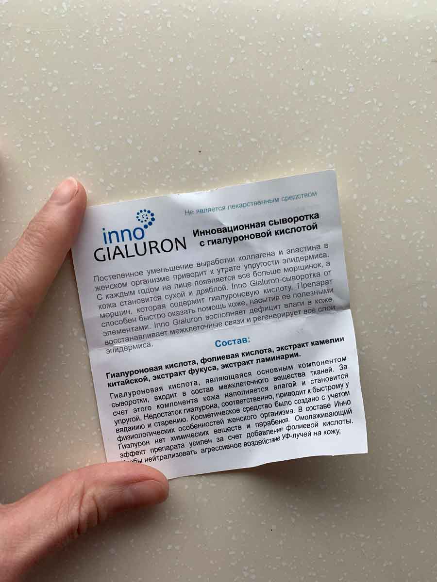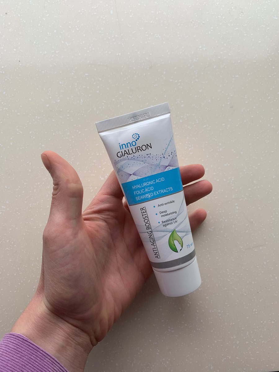 Probé Inno Gialuron porqe me gusta experimentar. Me sorprendió gratamente por su estructura delicada. La crema se absorbe rápidamente sin dejar ningún rastro de brillo o grasa. Su efecto es comparable con el estiramiento facil realizado en los salones de belleza. Después de dos semanas mi rostro se convirtió en 10 años mas joven