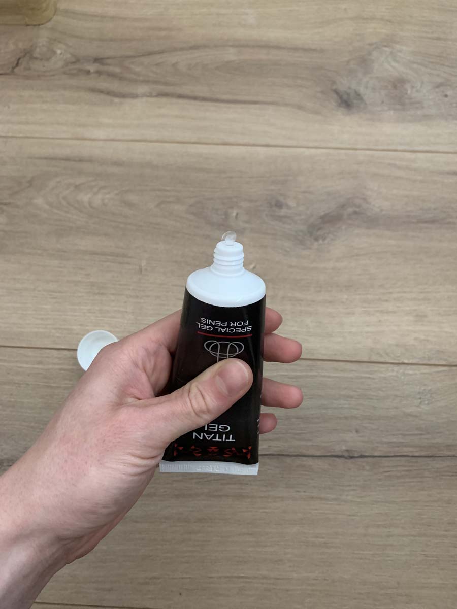 1. Tomar un pequeño guisante de Titan Gel y aplíquelo en el pene erecto a lo largo de toda la longitud;